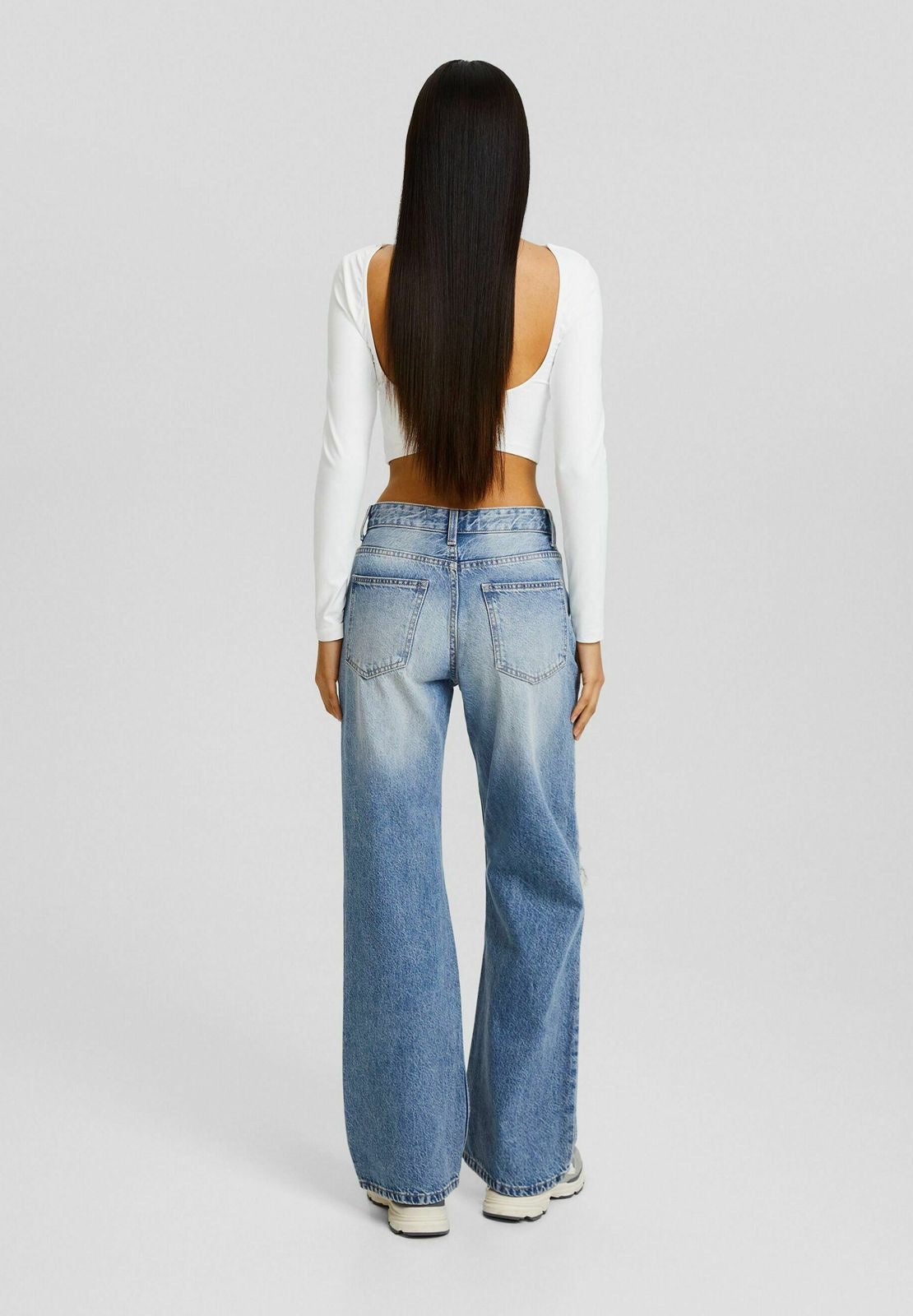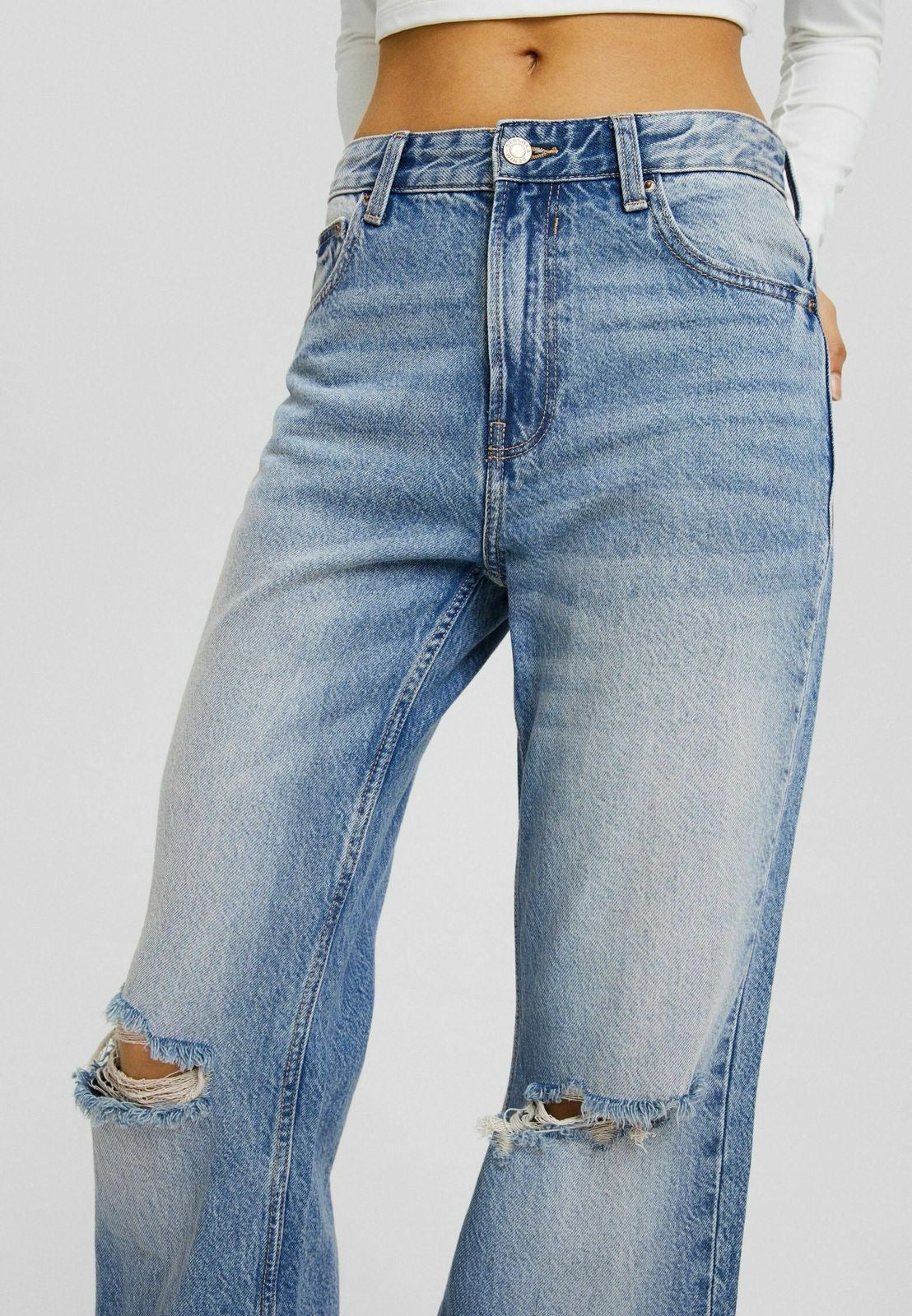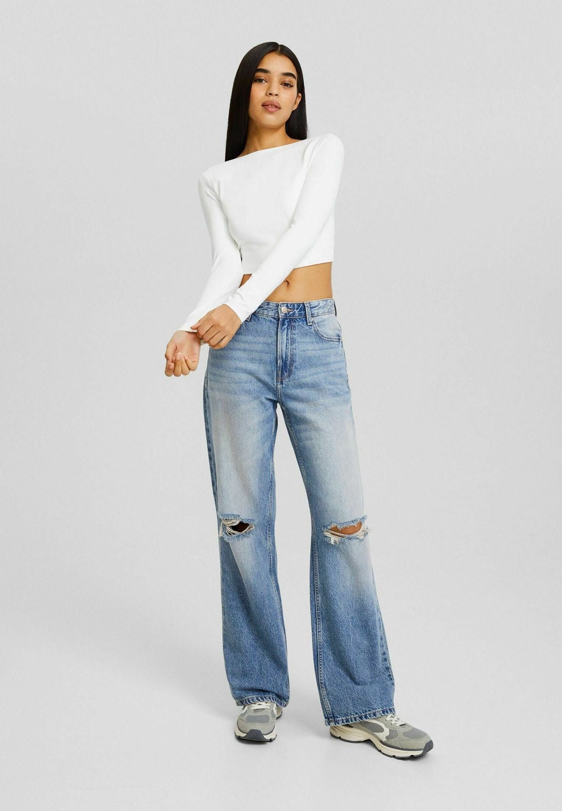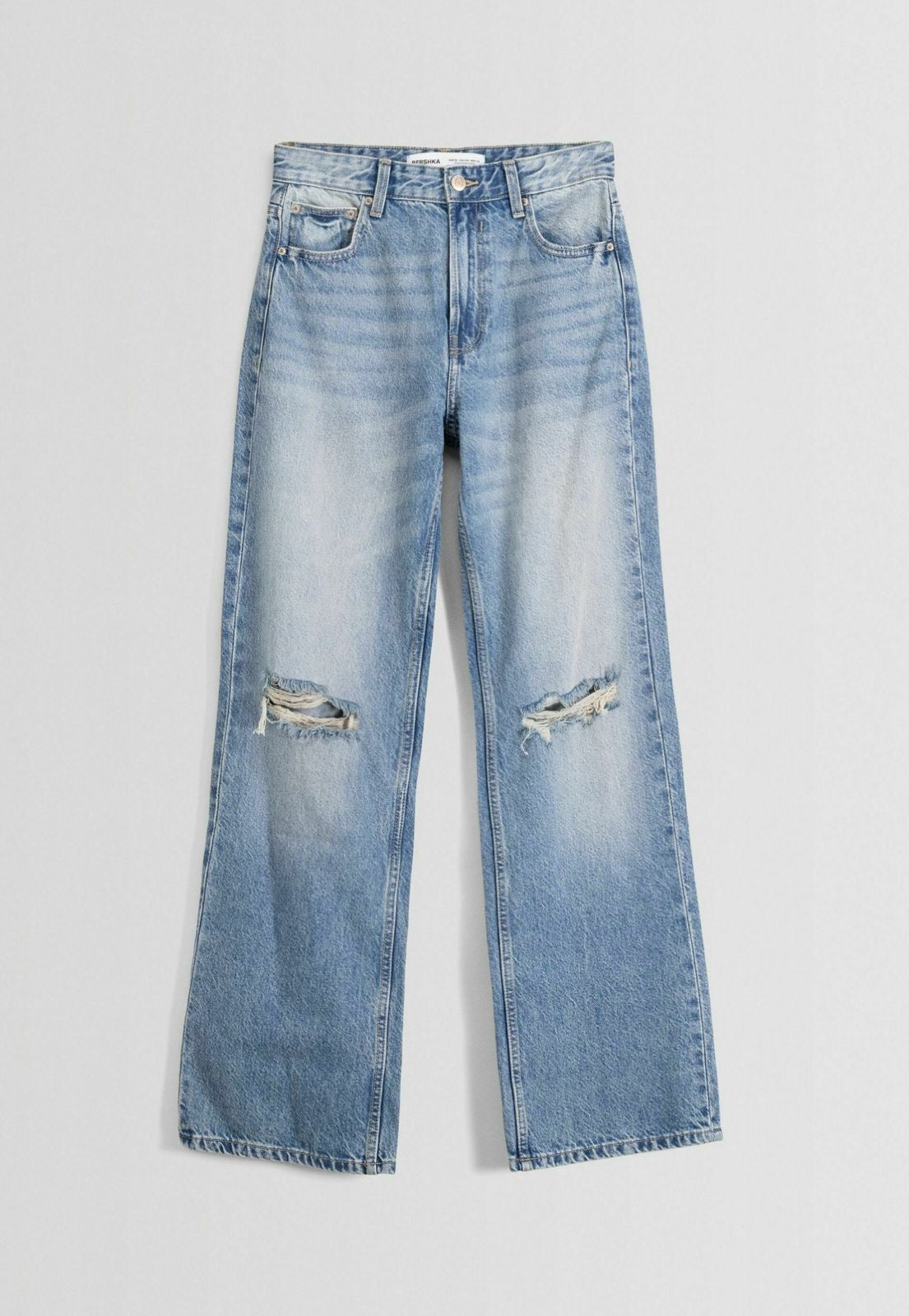 Featuring a highwaist design and ripped detailing, these jeans will give you a stylish and edgy look. The wide leg style offers a comfortable fit, perfect for any occasion. Upgrade your wardrobe with our trendy denim in a classic blue shade.