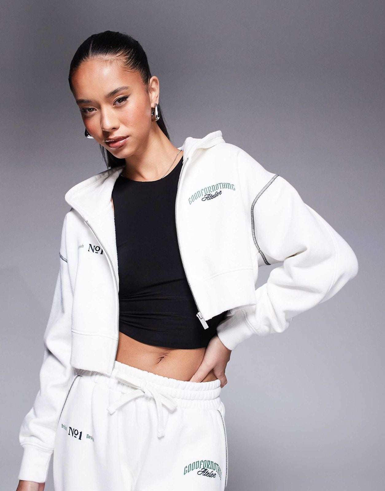 It has a relaxed fit with dropped shoulders, giving it a casual and streetwear aesthetic. The cropped hemline adds a trendy edge, making it perfect to pair with high-waisted joggers or jeans. The hood is oversized for a cozy, stylish look, and the fabric appears to be soft fleece or cotton blend, offering both comfort and warmth.
