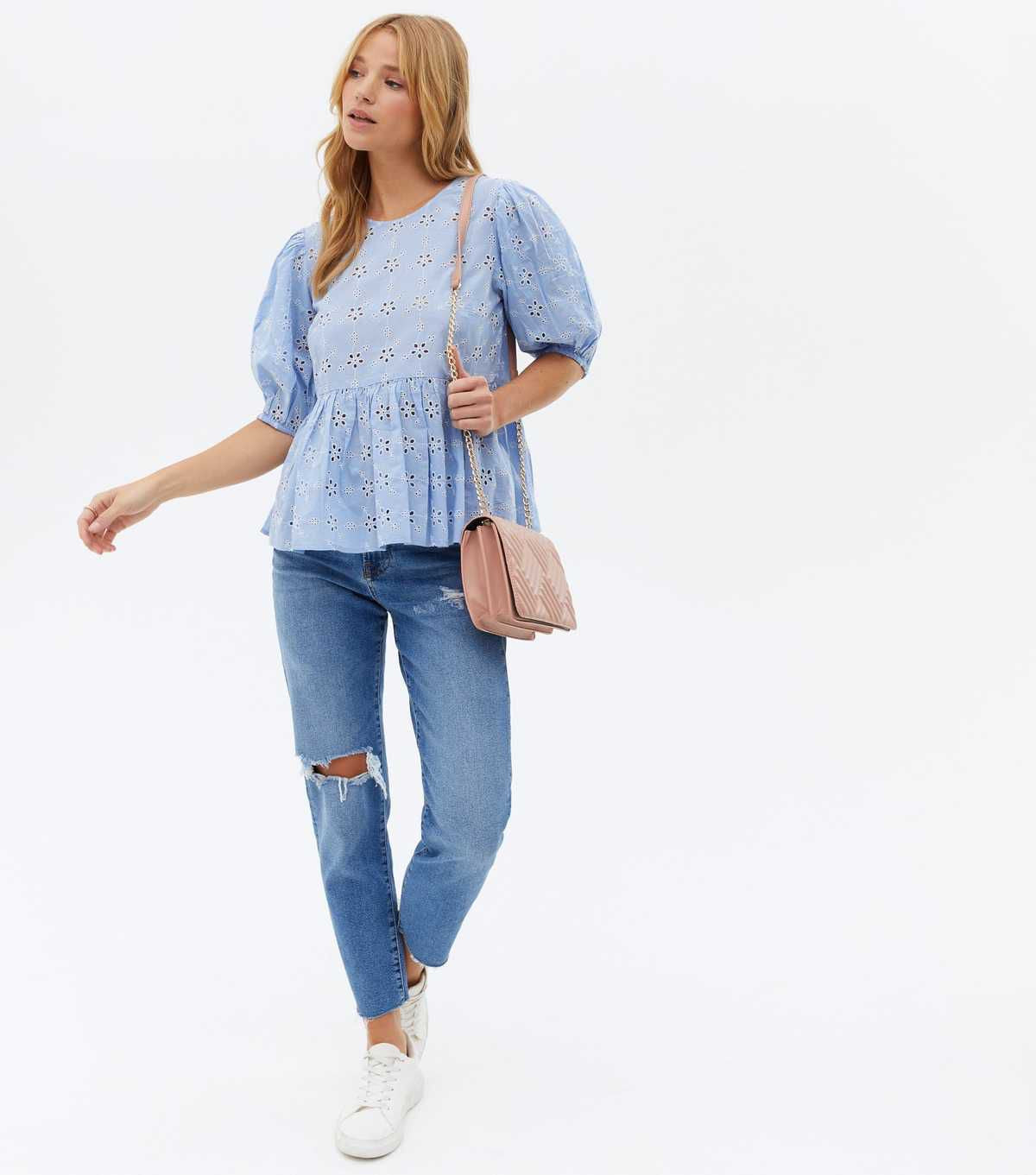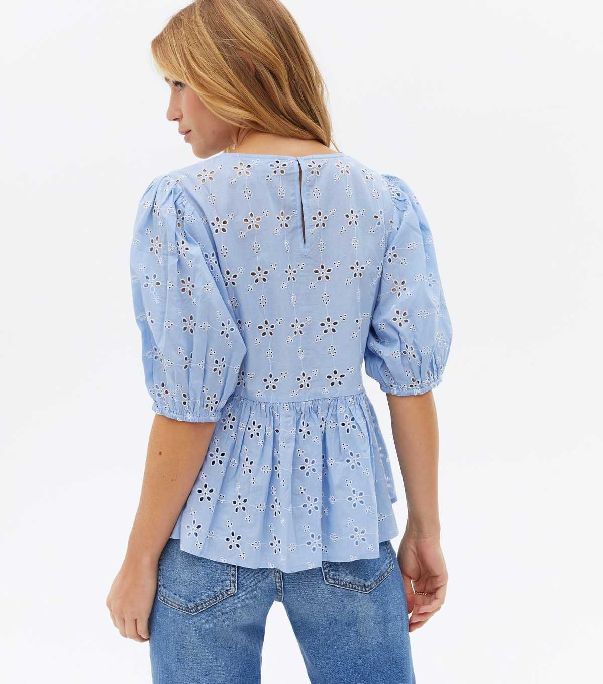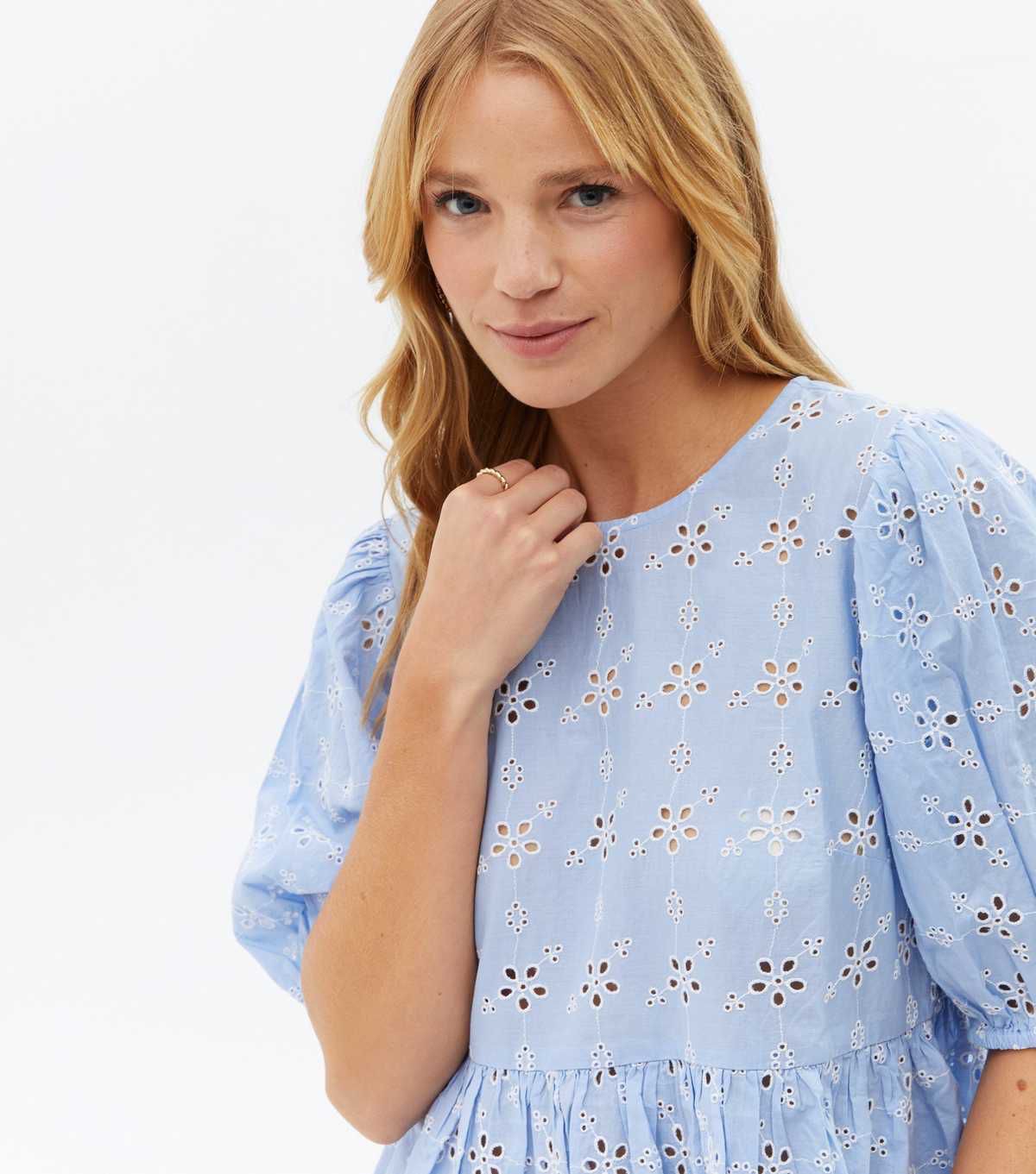 Pale Blue Floral Broderie Peplum Top