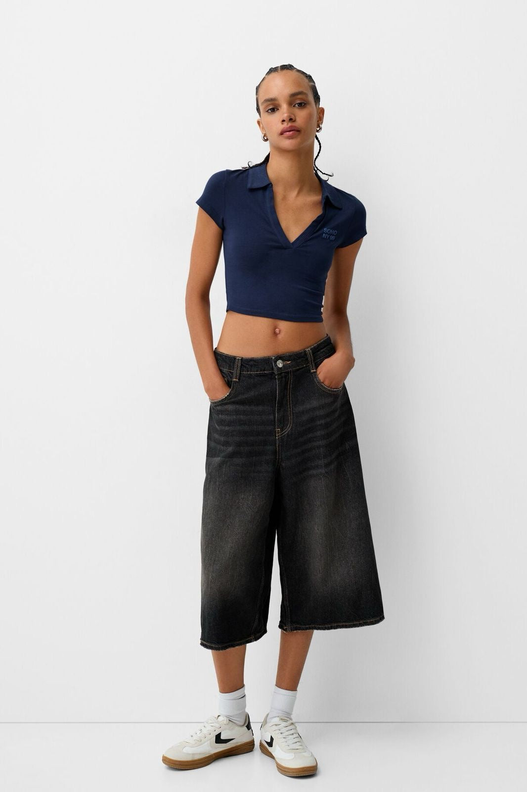 Cropped Fittted polo Shirt Cotton blend with a collar with short sleeve